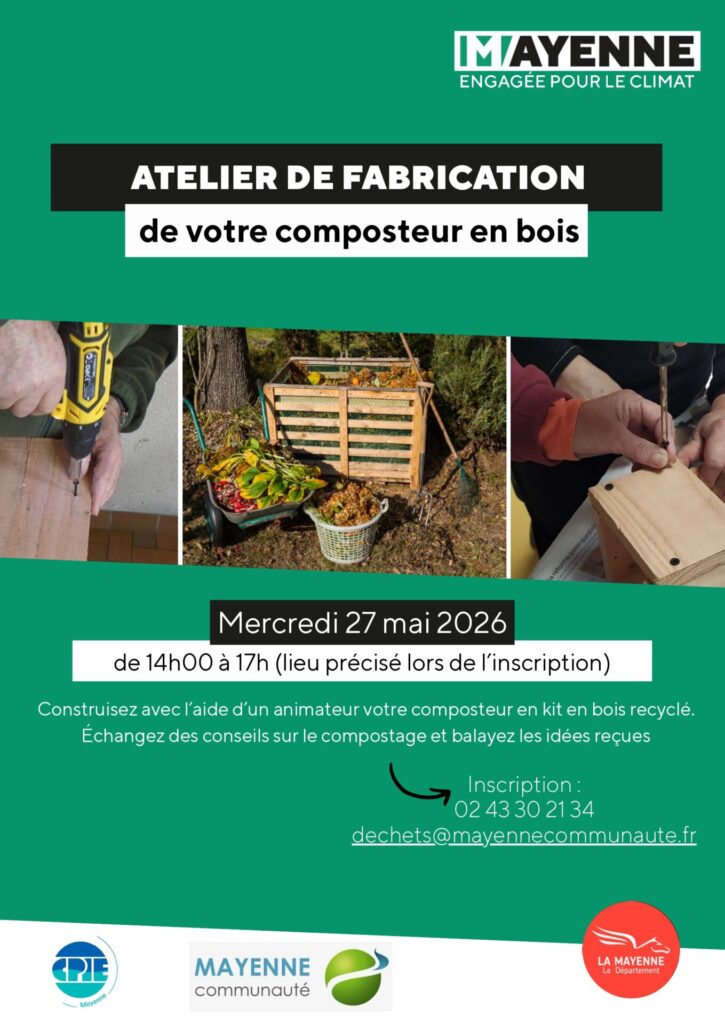 Nouveauté 2026 ! Mayenne Communauté, en partenariat avec le Département de La Mayenne, vous propose un atelier de fabrication d’un composteur en bois de récupération.